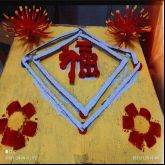 《福来了》这一作品主要体现祝福、幸运和一切顺利!每逢过年我们都会在除夕夜贴“倒福”,常言道:“福倒了福到了可不就是福到了嘛!”福字译幸福,同时希望所有人健健康康、和和睦睦、幸福的生活!