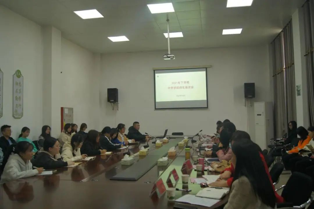 中药学院师生座谈为进一步加强中药学院教职工与广大学生之间的联系,倾听同学们的心声,中药学院于2021年12月4日下午两点在办公楼301会议室举办师生座谈会。到场的领导老师有中药学院叶云华院长、党总支杨萍书记及老师代表们和班级代表,大会由李林老师主持。