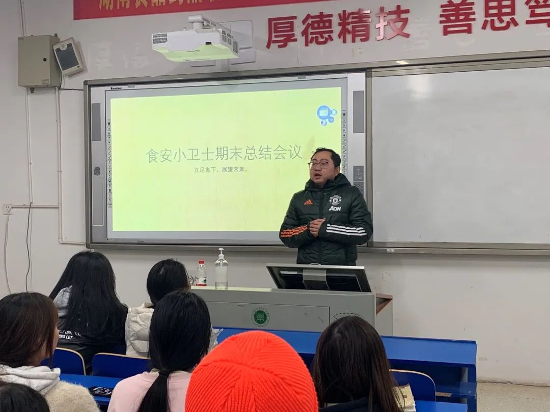 为了进一步推进我校食安小卫士团队的全面发展,我校食安小卫士团队于2021年12月16日在教学楼107召开本学期工作总结,参与此次会议有指导老师熊星尧老师、食安小卫士团队成员以及大一新生成员,本次会议由负责人谭高主持。