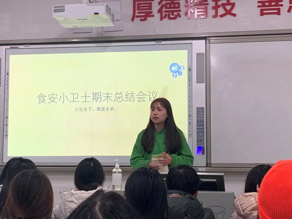 首先,负责人谭高对本学期食安小卫士活动进行总结,并且把下学期食安小卫士活动安排的具体化和系统化。其次,宣讲组组长陈喜阳上台对食安小卫士活动的开展进行分享。最后,团委学生副书记刘欣如对食安小卫士活动流程的开展进行了详细的讲解,以及对假期进行了详细的安排,并且提出以“老带新”的方式,用来提高团队成员之间互相学习、互相沟通的能力。
