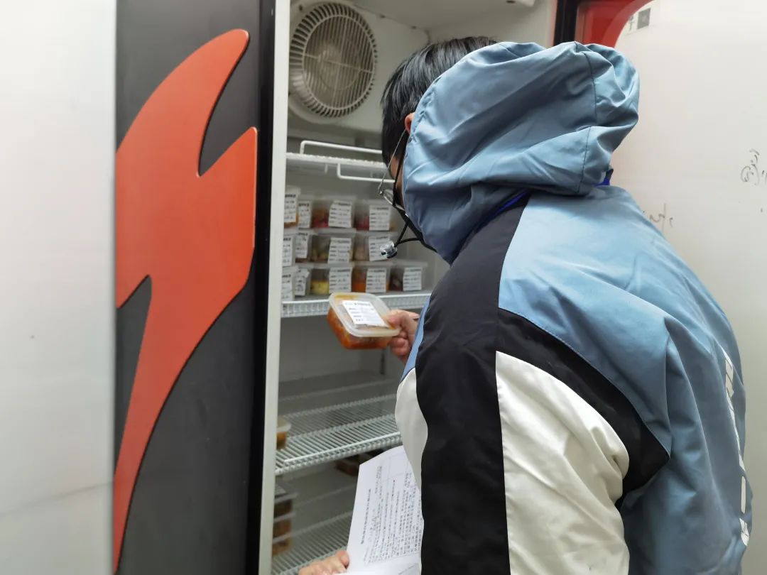 (对食堂食品留样进行检查)