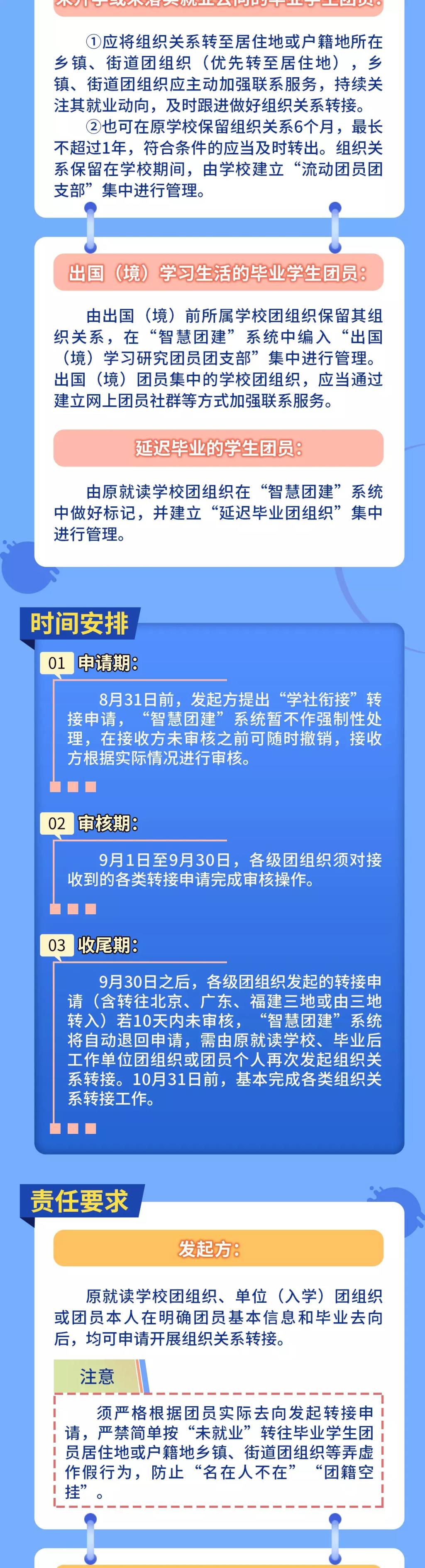 毕业季来临又有一群同学们将要走出校门在大家离开母校走上新的学习工作岗位之际记得做好团员档案和组织关系转接工作哦近日团团经常在后台收到同学们的求助问题:团团,毕业要去参加工作了工作单位没有团组织怎么办?升学或就业去向暂未确定团组织关系怎么处理?向往军营生活,打算参军入伍团员档案放在哪里呢?别慌!这张一图读懂帮你轻松解答
