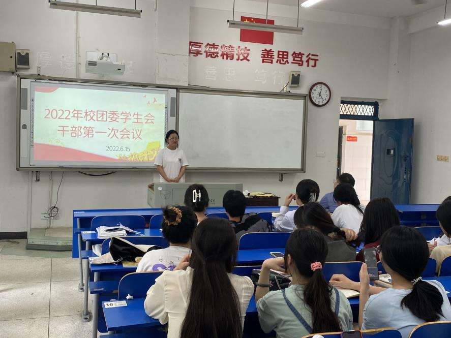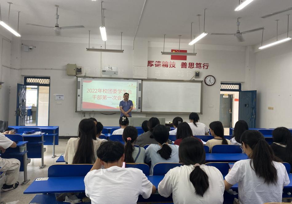 2022年6月15日中午12:10,校团委学生会于教学楼312教室召开2022年新任团学干部第一次会议,校团委书记熊星尧出席,会议由团委学生副书记李思佳主持。