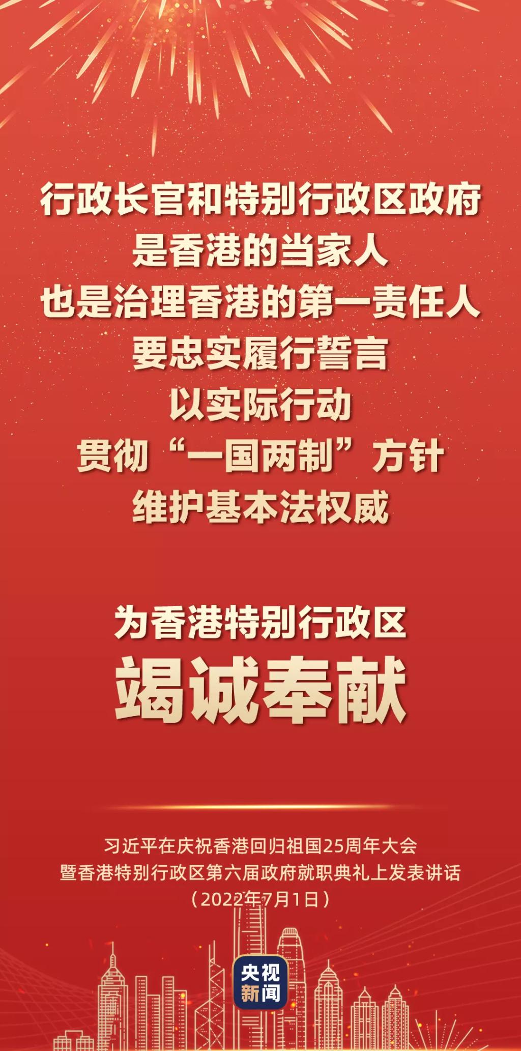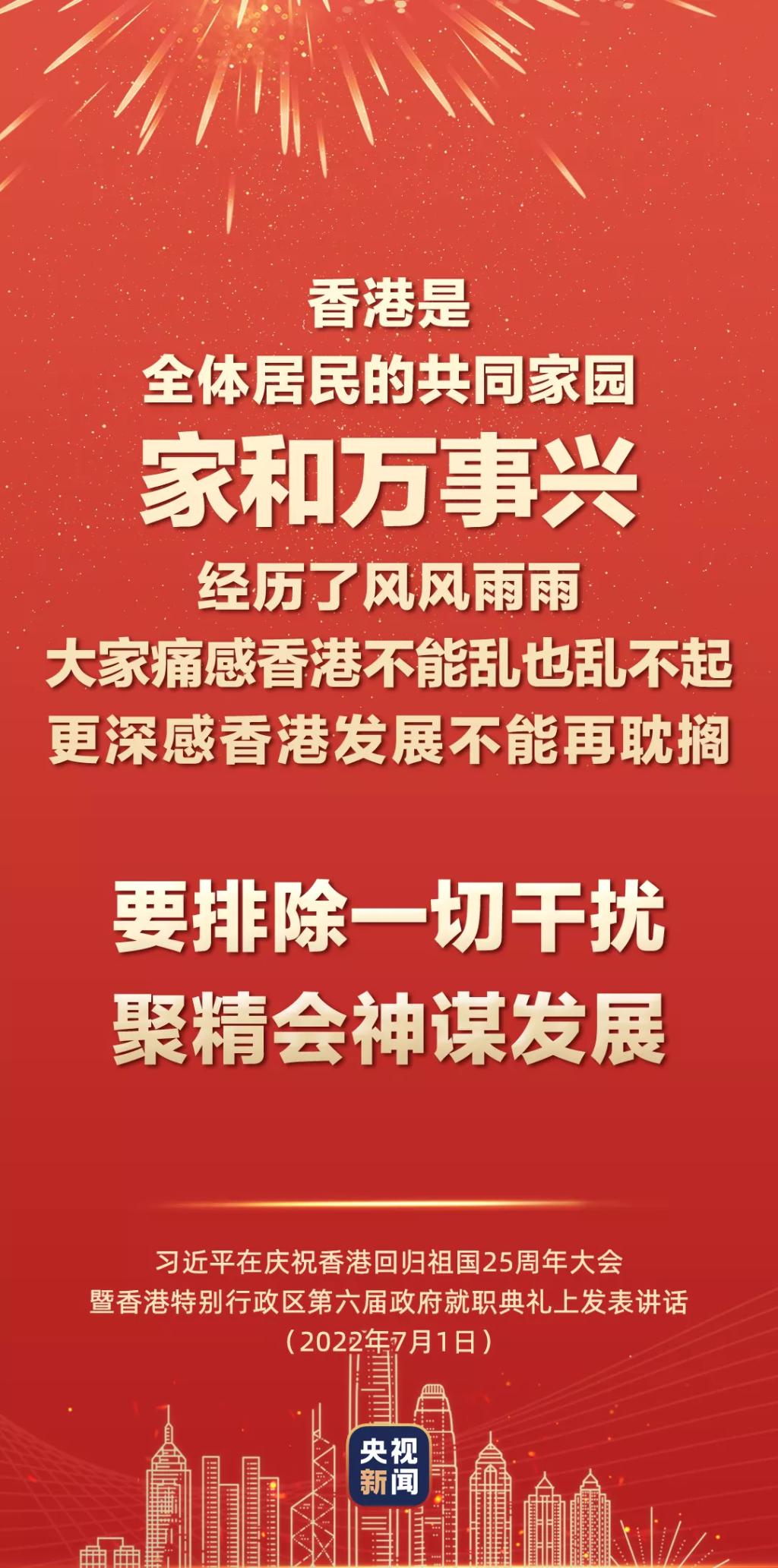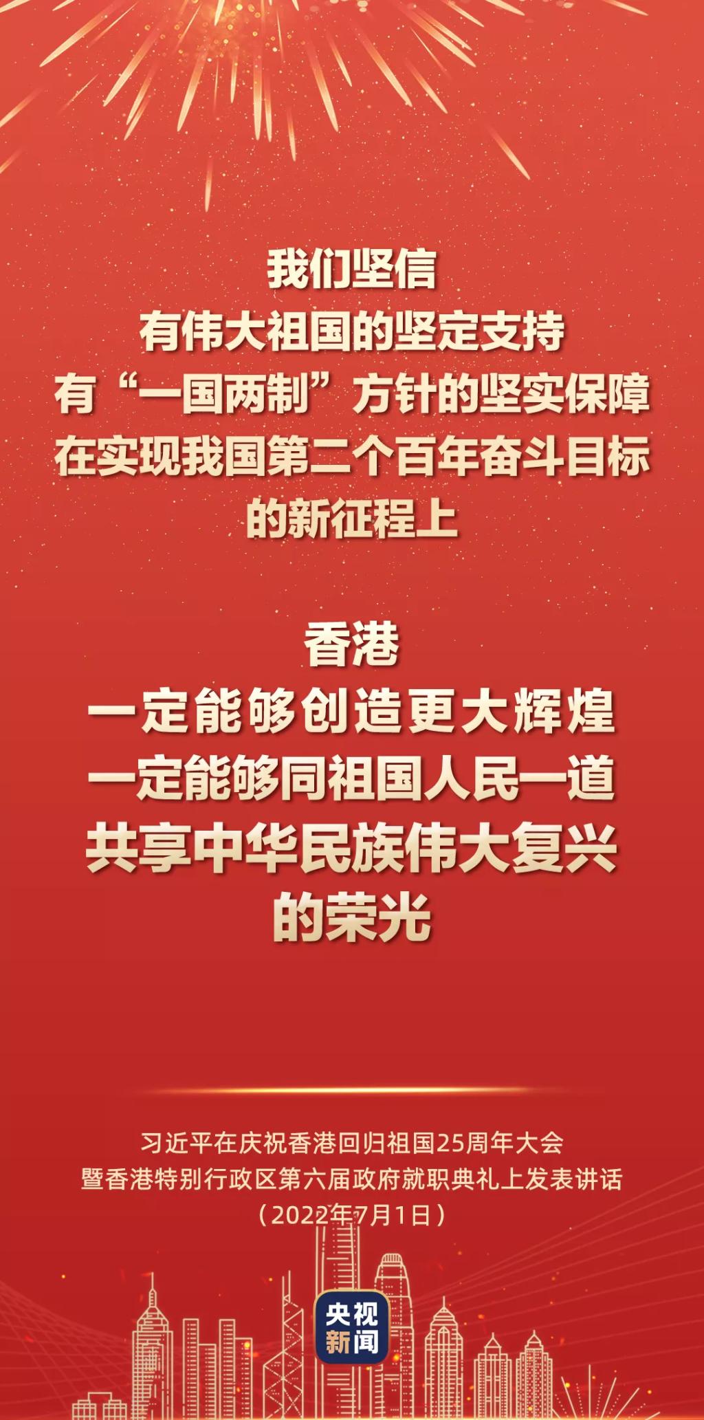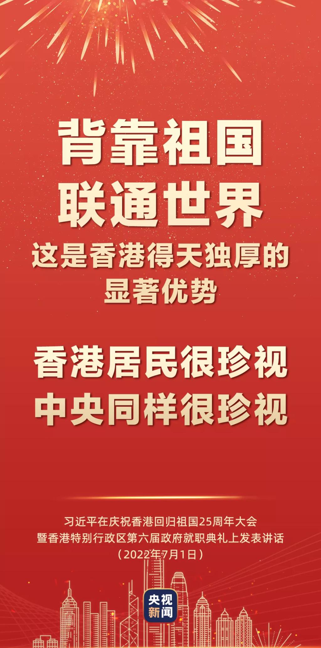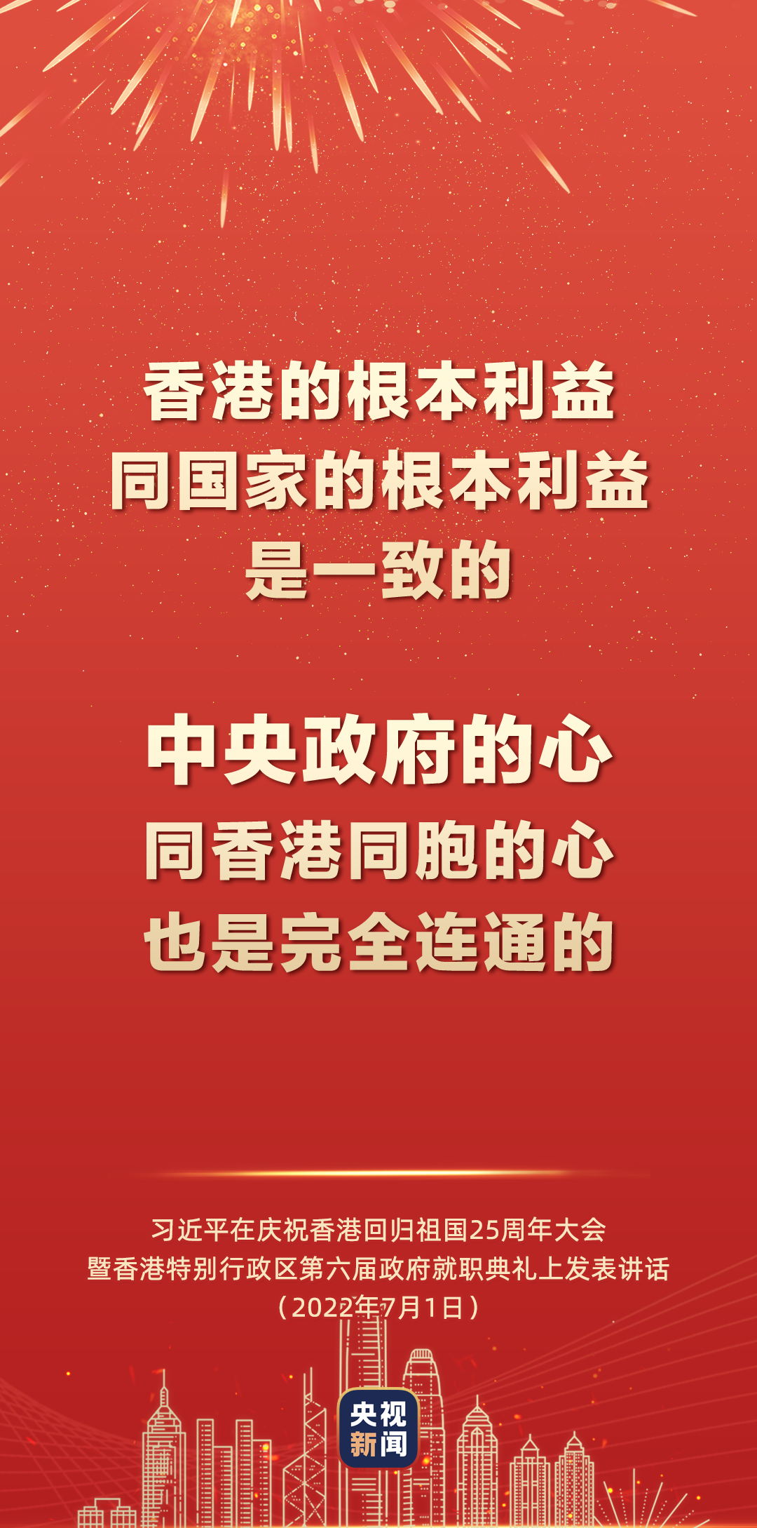 习近平说,在庆祝香港回归祖国20周年大会上,我曾经讲过,中央贯彻“一国两制”方针坚持两点,一是坚定不移,确保不会变、不动摇;二是全面准确,确保不走样、不变形。今天,我要再次强调,“一国两制”是经过实践反复检验了的,符合国家、民族根本利益,符合香港、澳门根本利益,得到14亿多祖国人民鼎力支持,得到香港、澳门居民一致拥护,也得到国际社会普遍赞同。这样的好制度,没有任何理由改变,必须长期坚持!