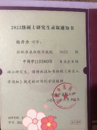 杨丹丹,湖南食品药品职业学院中药学院2017级中药17304班学生,在校期间担任中药学院第四届学生会办公室主任、班级生活委员。两年在校期间,成绩一直保持在班级前列,从大一开始就确定专升本的目标。大三实习期间,边工作边复习,于2020年七月成功考入湖南中医药大学药学院中药学专业。本科期间,从2021年8月备战考研,于2022年4月通过考研复试,成功上岸江西中医药大学中药学专业。