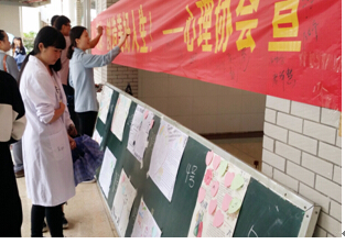 本次宣传活动包括优秀黑板报评比、手抄报征集大赛、大学生心理健康教育讲座、大学生心理素质拓展团体辅导等一系列活动。5月25日“我爱我”心理健康日当天,同学们积极在横幅上签名表达对健康心灵的向往,同时现场投票,选出制作精美的“关注心理健康,构建和谐校园”主题手抄报,同时向学生宣传了我院心理健康咨询中心以及心理咨询相关的知识。