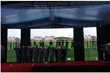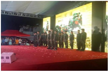在晚会节目的表演上,社团展现了军旅上的队列、军体拳、应急棍法、擒拿格斗等军事技术,在有序的上场和下场之时喊出了社团的军旅口号“学军旅,听军令,铸军魂”,节目在观众的大声尖叫之下圆满结束。