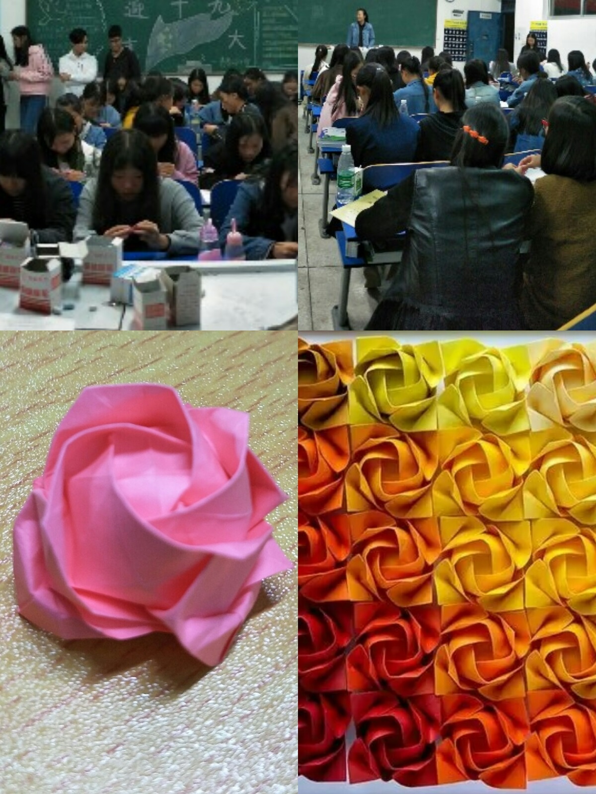 10.24号周二晚手工社于教学楼504组织学习折纸———川崎玫瑰。