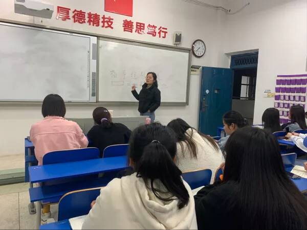 2021年4月19日晚英语社在教学楼208教室举行日常活动,英语社全体人员参加,本次活动由社长肖敏主持。为了深入学习英语,进一步加强对英语的认识,英语社指导老师徐静来为我们做关于英语方面的经验会谈。首先徐老师教给大家学好英语的诀窍,比如说:自觉练习,多开口练英语,反复做真题。接下来徐老师一一为我们解答了关于英语方面的疑惑。最后由社长肖敏带领社团成员们背诵英语短句并默写下来。