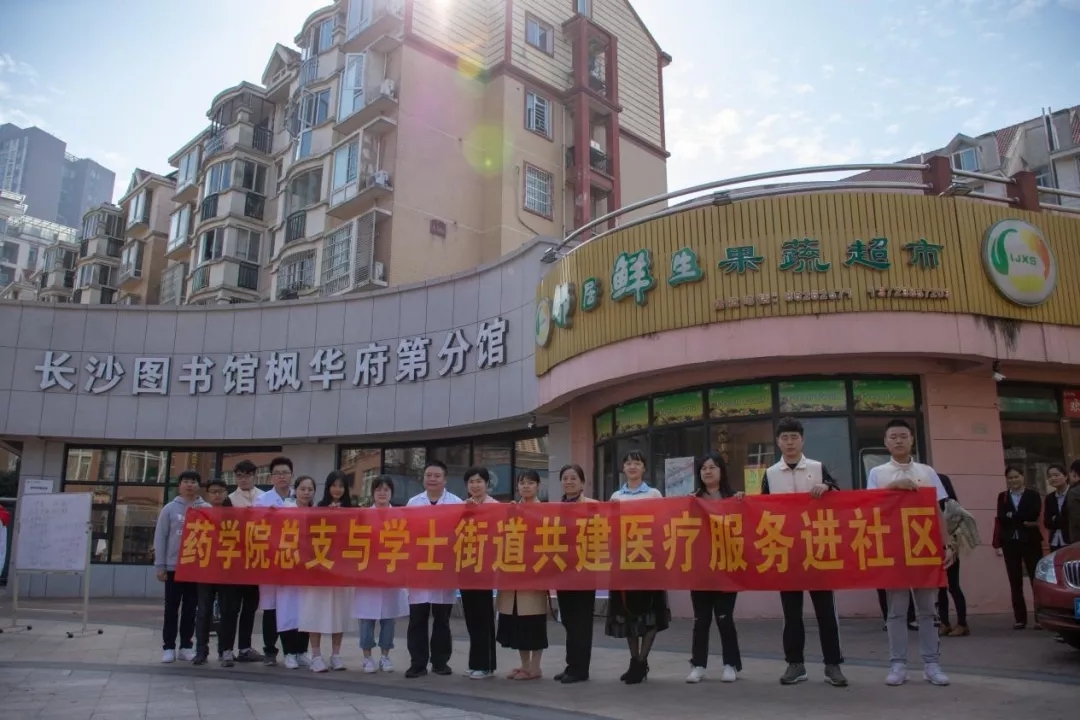 为深入贯彻落实中央、省委有关城市基层党建工作要求,实现学士区域统筹、资源共享、活动共联的区域化党建共建新模式。11月1日上午,在学士街道党建办、卫计办的指导下,学府社区联合我校和湖南中医药大学在长沙图书馆枫华府第前坪顺利开展了“医疗进社区”活动。
