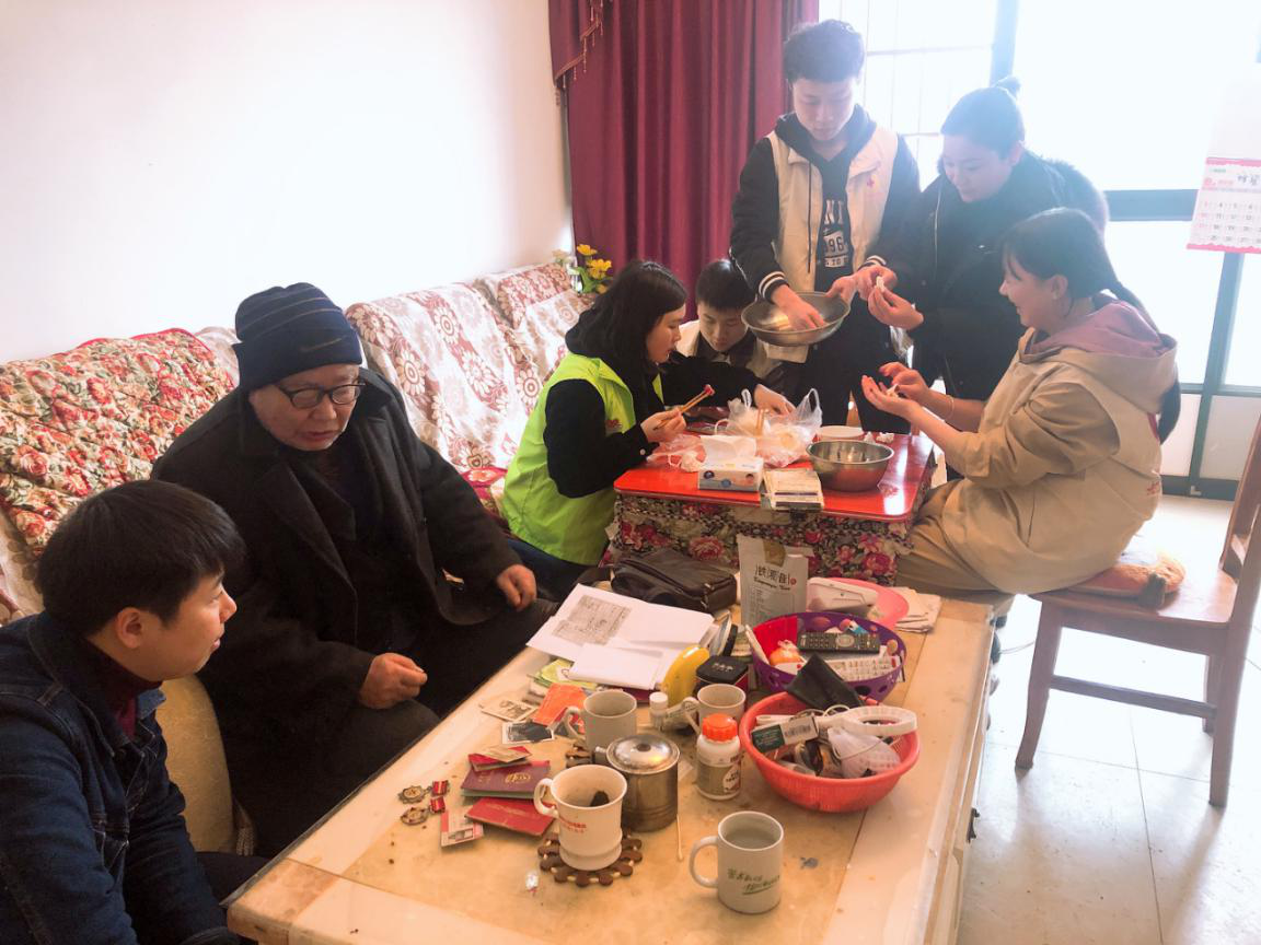上午10点,志愿者们带着慰问品来到了抗战老兵许爷爷家中,大家一起动手把带来的食材清洗干净,有的剁馅,有的擀皮,有的包饺子,不一会就给许爷爷做了一顿“爱心”午餐。许爷爷在吃到志愿者们做的饺子之后,连声夸赞味道很好,脸上的笑容愈发灿烂。