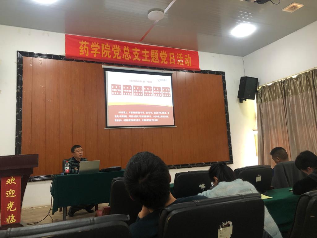 2020年11月15日下午,张雪昀副校长在沃之园拓展基地讲了题为《读懂抗疫大考的“中国答卷”》的专题党课。药学院全体教师党员以及学生党员参加了现场学习。