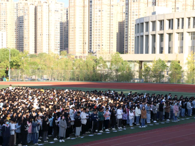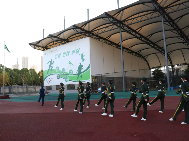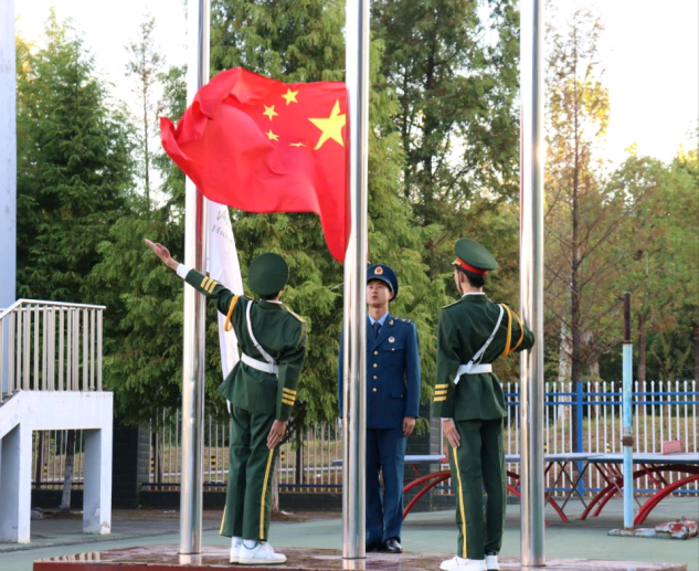 早上七点,沐浴着清晨的露水与朝阳,国旗队队员们迈着矫健响亮的步伐,庄重严肃地将国旗与校旗护送至升旗台,随着昂扬的国歌响起,全体师生行注目礼,庄重严肃凝望国旗缓缓升起,校歌与校旗紧随其后,两旗随风飘扬。