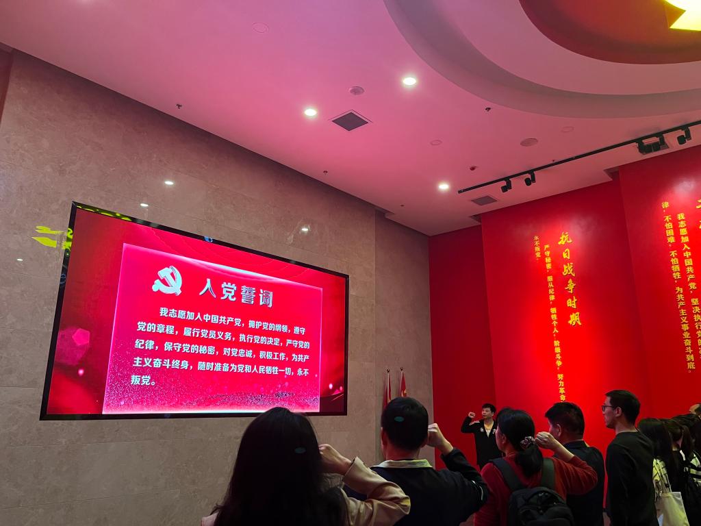 参观学习结束后,全体党员面对党旗重温了入党誓词。通过本次参观学习,药学院党总支全体党员将不断深化党性教育,持续推动学习贯彻习近平新时代中国特色社会主义思想,将学习成果转化为坚定理想、锤炼党性和指导实践、推动工作的强大力量。
