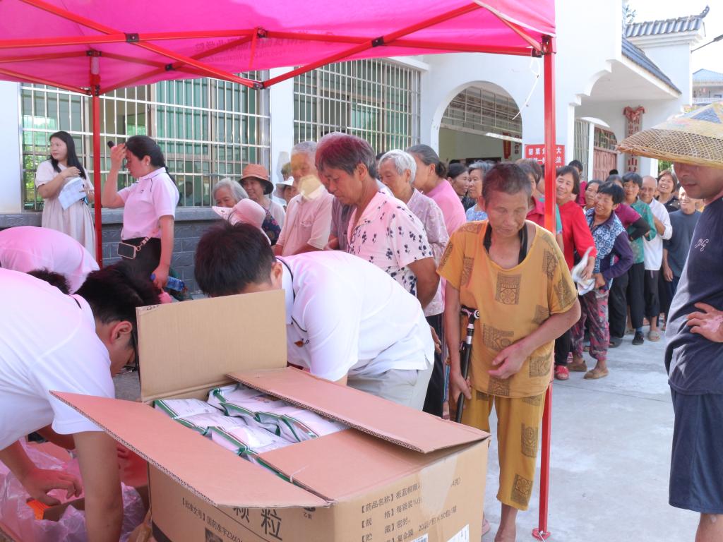 活动伊始,志愿者们便在村委员设立了药品分发点,为有需要的居民免费发放常用药品,并耐心讲解药品的使用方法和注意事项。与此同时,药学院的爱心义诊也在如火如荼地进行着。我院的师生志愿者们认真地为村民们进行健康检查,包括测量血压、血糖等项目,并针对每个人的身体状况提供了建议。教师志愿者还利用专业知识,为群众普及健康知识,引导他们树立正确的健康观念和生活方式。
