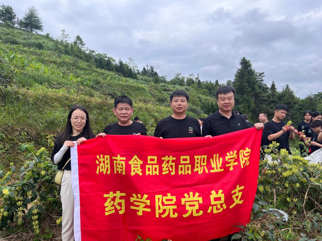 2024 年 7 月 12日,在这个阳光明媚的夏日,药学院党总支党员代表与“三下乡”社会实践学生志愿者团队走进了隆回县花瑶金银花种植基地,开展了一场别具意义的采摘活动。