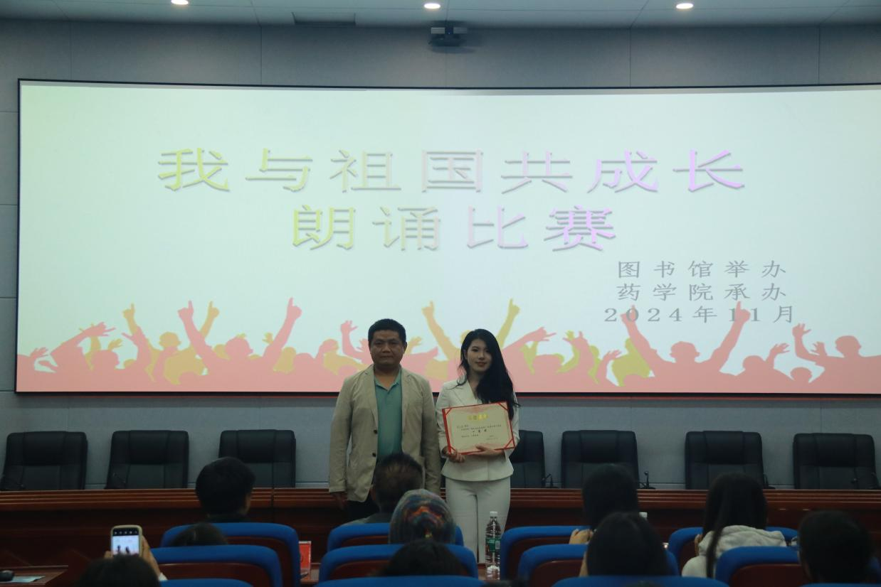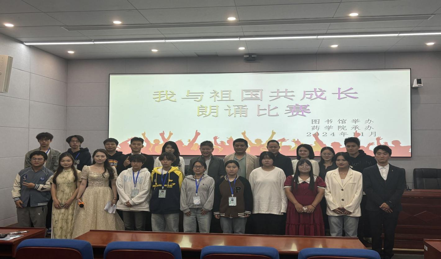 2024年11月7日,我校在图书馆视频会议室举行了"我和祖国共成长"朗诵比赛决赛。药学院院长万能、党总支书记廖跃文、党总支副书记熊伟等领导和评委参加本次活动。