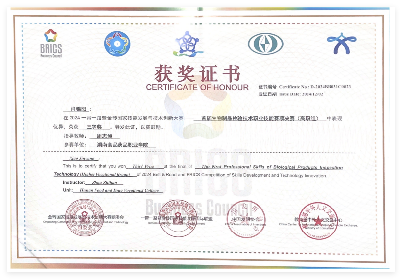 —— 我校药学院学生荣获生物制品检验技术职业技能三等奖