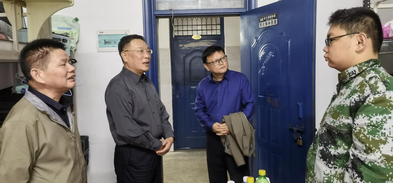 杨文伟、欧健一行细致查看了宿舍环境卫生、基础设施运行及消防安全设施状况,重点检查了用电安全情况,反复叮嘱同学们要牢固树立安全防范意识,坚决杜绝违规电器使用,共同维护安全和谐的居住环境。与同学们交流时,校领导亲切询问大家的学习进度、生活适应情况及新学期规划,耐心倾听大家在学业发展、宿舍生活等方面的困惑与诉求,对提出的问题逐一记录,并要求相关部门及时核实处理、确保件件有回音。