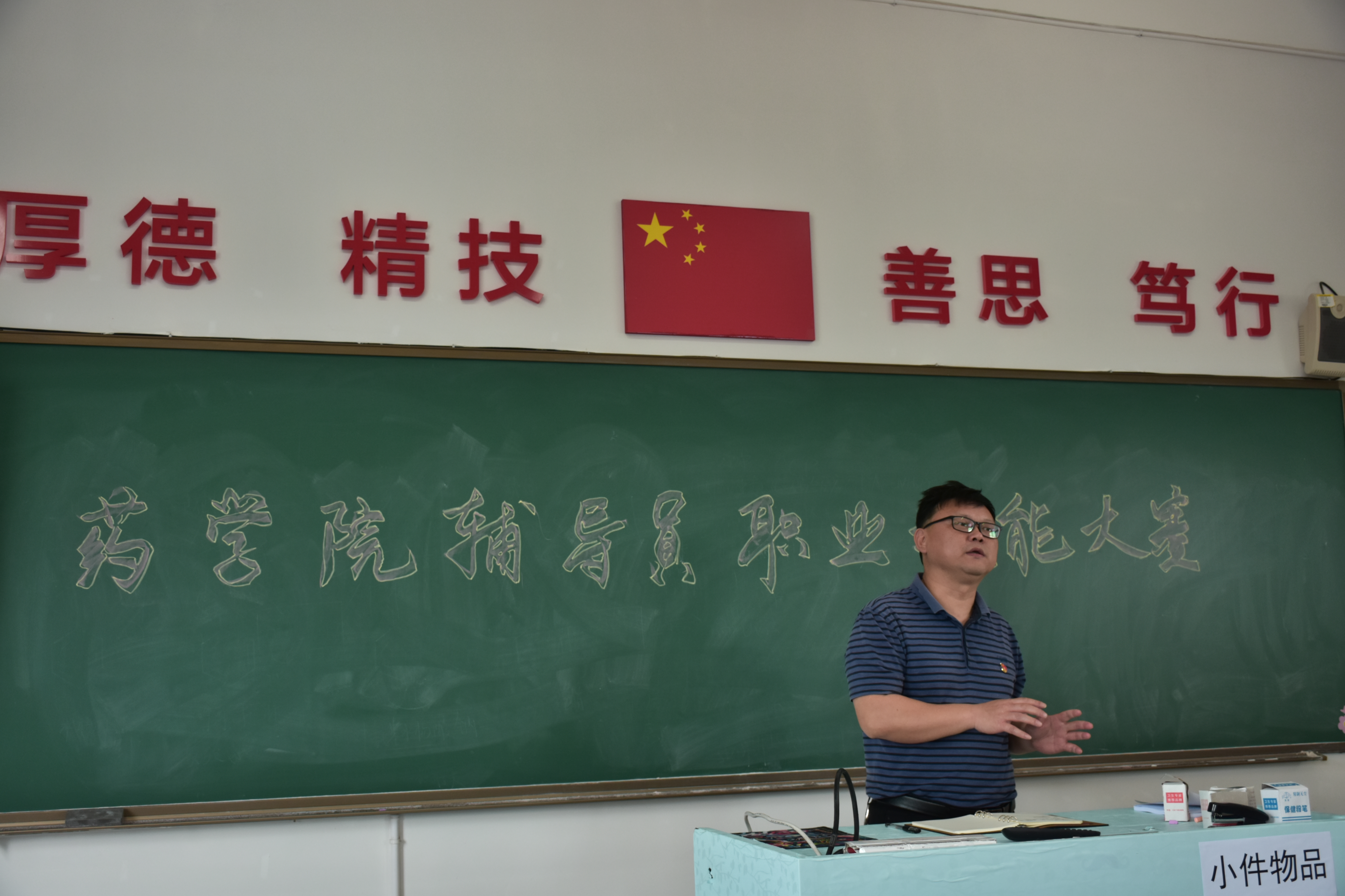 为深入学习宣传贯彻习近平新时代中国特色社会主义思想和党的十九大精神,全面贯彻落实全国高校思想政治工作会议和《中共中央国务院关于加强和改进新形势下高校思想政治工作的意见》精神,提升辅导员的职业技能和工作水平。4月19日我院举办辅导员职业技能大赛,宣传统战部部长欧健、基础学院院长舒展、洞井学院党总支书记贺斌、学生工作与保卫处副处长王燕、药学院党总支书记陈少华出席本次大赛,并担任评委。
