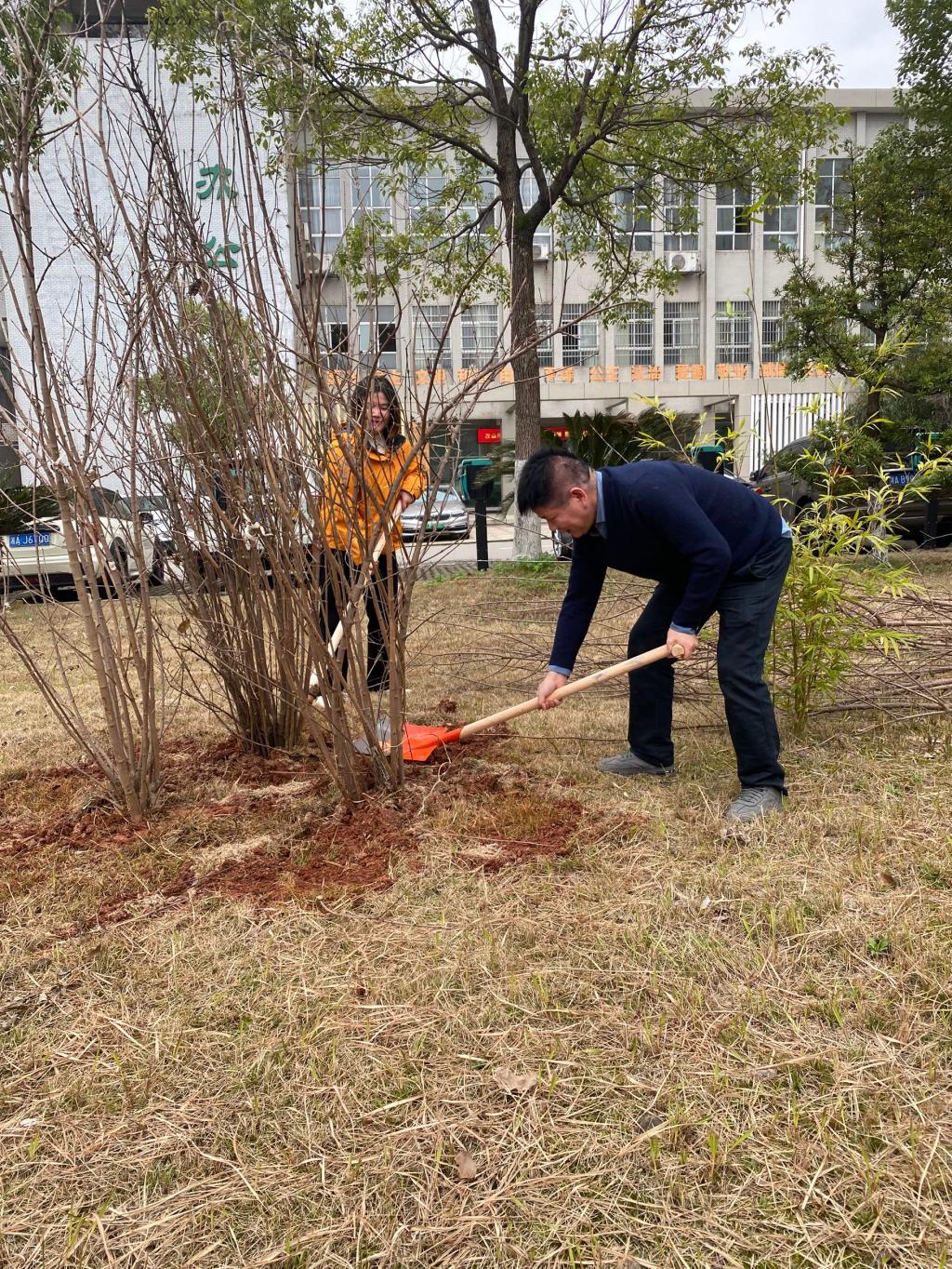 活动当日,党员代表们率先垂范,他们手持锄头和铁铲,干劲十足地投入到挖坑、培土等工作中。每一个动作都饱含着对校园环境建设的热情与责任,他们细心地确保树坑的深度与宽度适宜,为树苗的茁壮成长打下坚实基础。入党积极分子们也紧跟步伐,或两人一组扶苗定植,或帮忙搬运树苗,大家齐心协力,分工明确,现场一片繁忙有序的劳动景象。