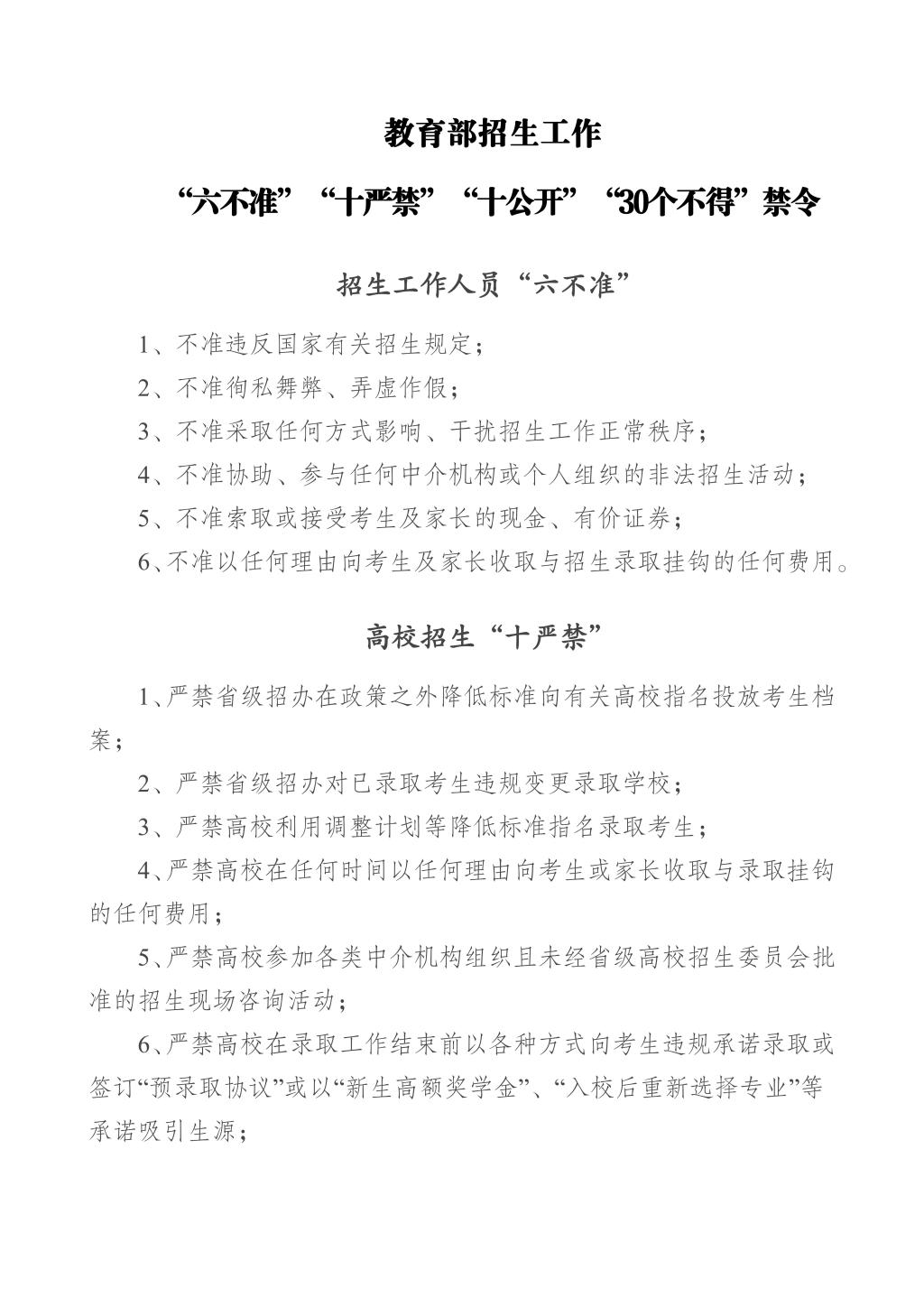 教育部招生工作 “六不准”“十严禁”“十公开”“30个不得”禁令 返回列表 发布日期: 2024-05-16 作者: 资料来源: 上一条湖南食品药品职业学院2025年普通高校招生章程 下一条湖南食品药品职业学院2023年普通高校招生简章