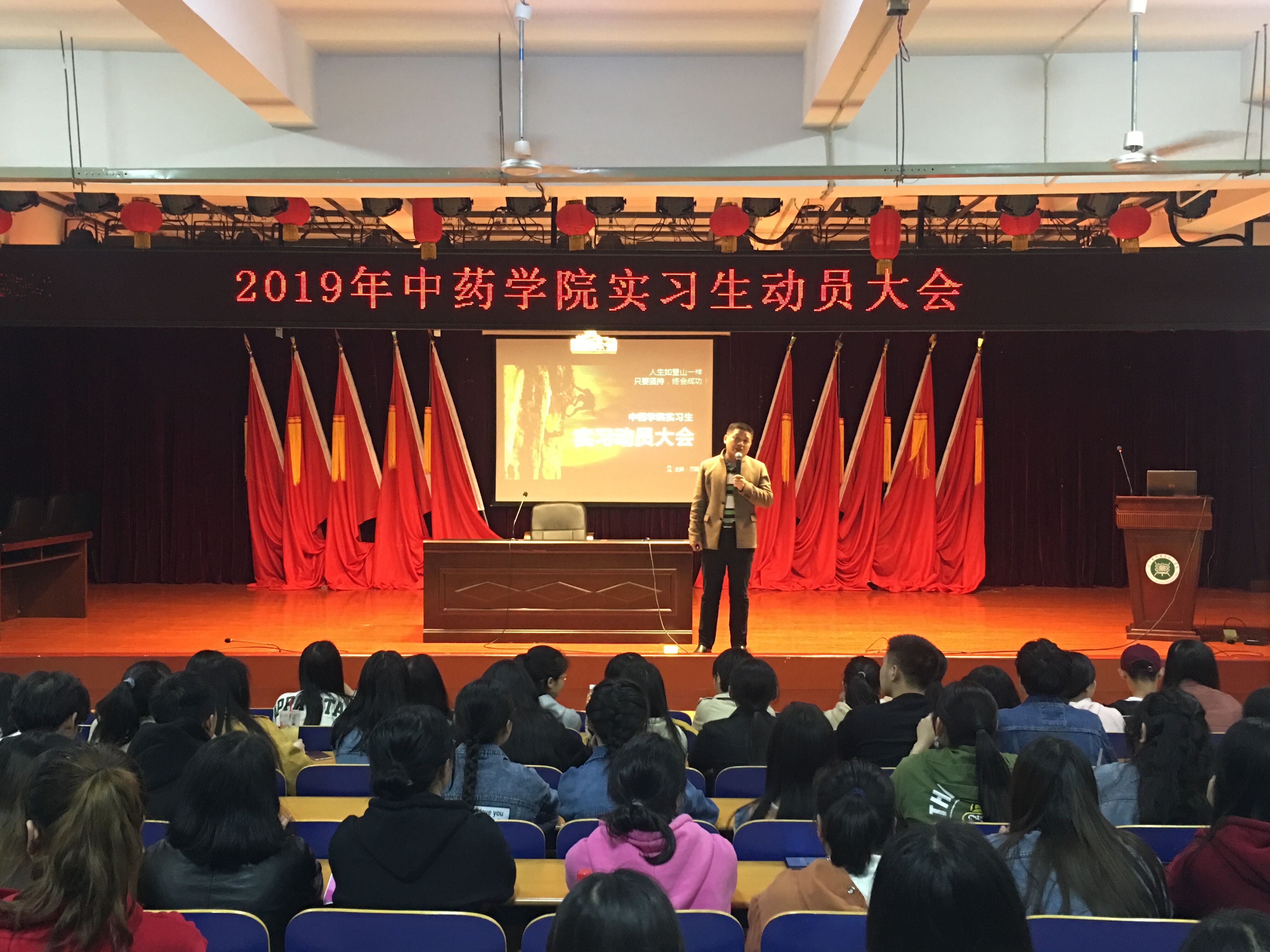 4月16日晚,中药学院在学校多功能报告厅举行“2019年中药学院实习生动员大会”。全体实习班级辅导员及学生参加会议,会议由中药18307班周喆同学主持。
