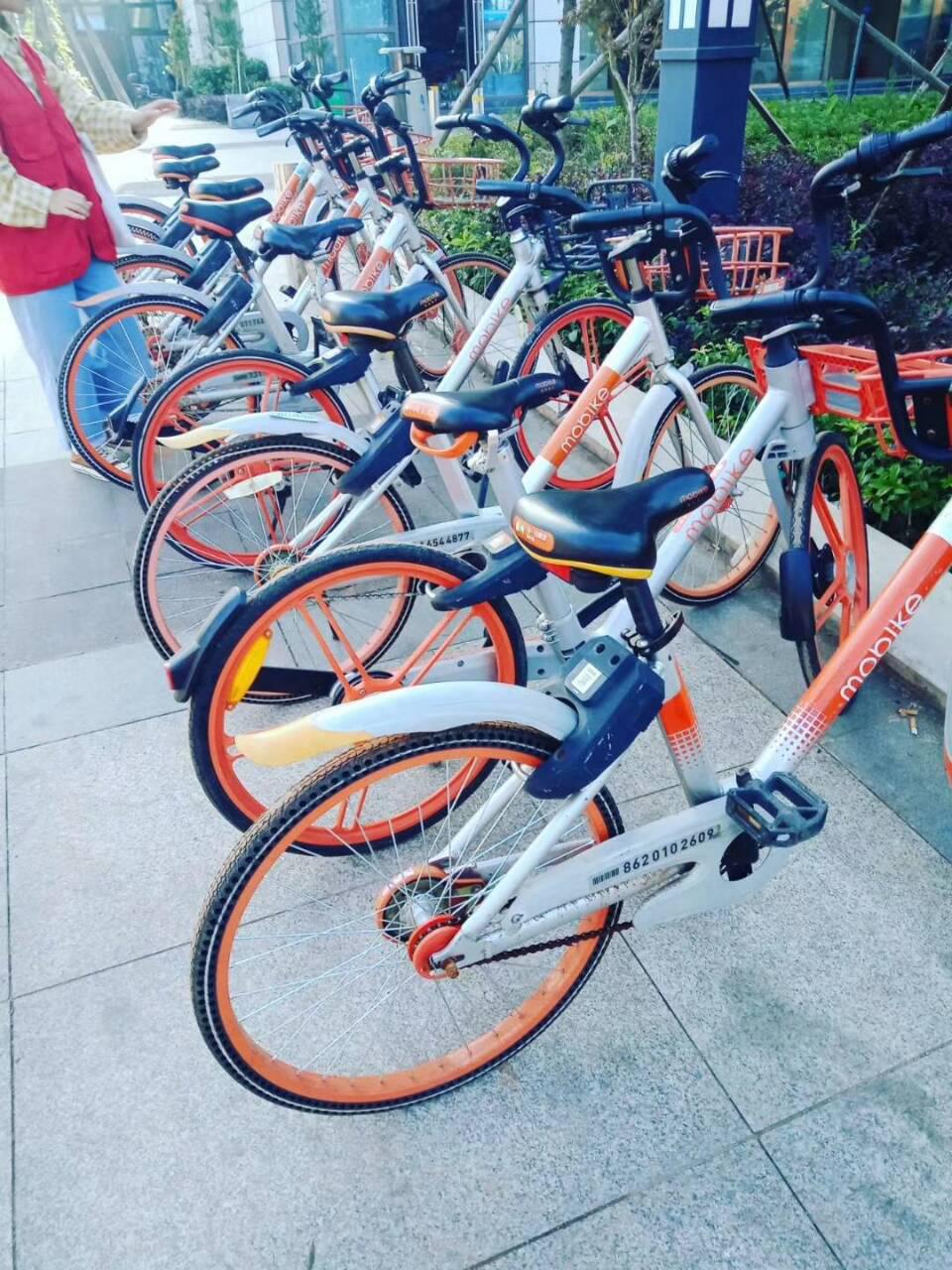 通过志愿者们整理后干净整齐的共享单车