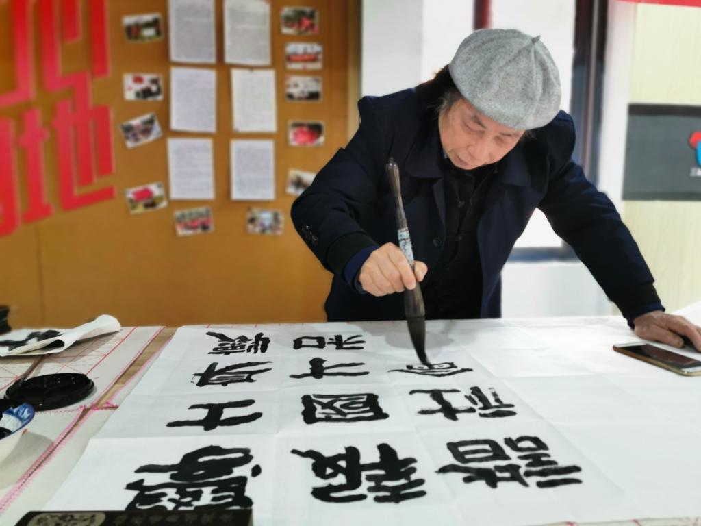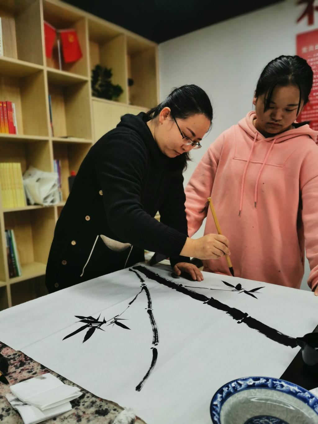 温暖的午后,有着阳光相伴,墨香相随。志愿者们一来到社区办公室,就被一阵阵墨香所吸引,原来是社区居民艺术家们在挥毫泼墨,他们专注又认真的眼神,吸引了刚到来的志愿者们。看到我们的到来,社区的负责人带我们参观了社区文化服务站,有图书室,有书画室,有阅览室,还有棋牌娱乐室等等,让我们感受到了浓浓的文化氛围。在书画室,我们跟老艺术家们学习写字、画画,因为有吕老师作为我们坚强的后盾,我们一群愣头青硬是敢和老艺术家们拼书法,结果当然是班门弄斧了,老艺术家们为我们指点书法,教我们欣赏书法艺术,也是教我们学习传统文化、为人处世的道理。
