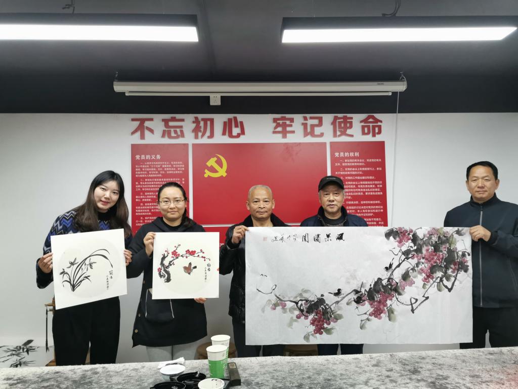 接下来吕老师与各位老艺术家共同进行了绘画和书法表演,相互交流绘画心得,探讨如何将传统国画更清晰精美的呈现在观众眼前。期间,因为心情愉悦,还有一位老爷爷开心和唱起了小曲,同学们也随着一起哼唱了起来,书画室里音乐、书法、绘画交织,呈现出一幅生机盎然的和谐美丽画卷。