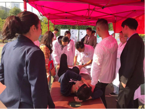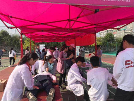 我校第23届运动会期间,湖南省知名养生保健企业—湖南颐而康保健连锁股份有限公司派出一名医生、六名高级技师和我院中医养生保健专业的师生一起为我校师生进行为期两天的免费中医养生保健服务。