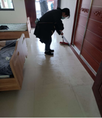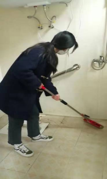 中养2002班李静同学为孤寡老人打扫房间