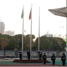 伴随着雄壮的国歌和激昂的校歌,国旗和校旗冉冉升起,在初春的晨曦中随风飘扬。