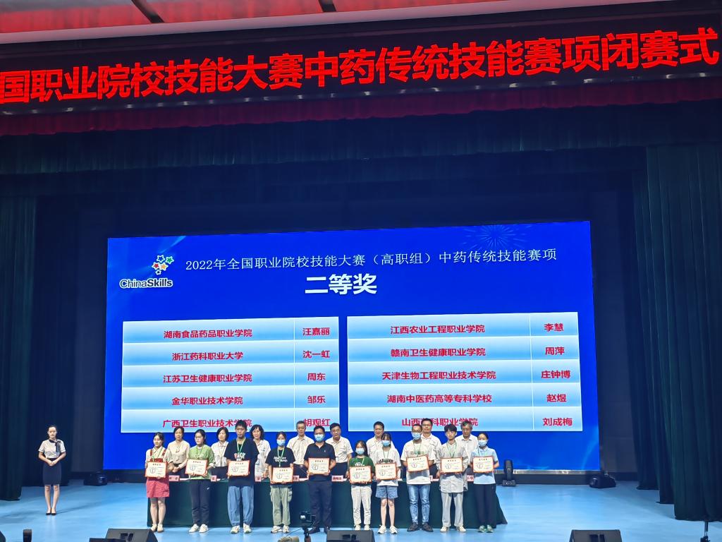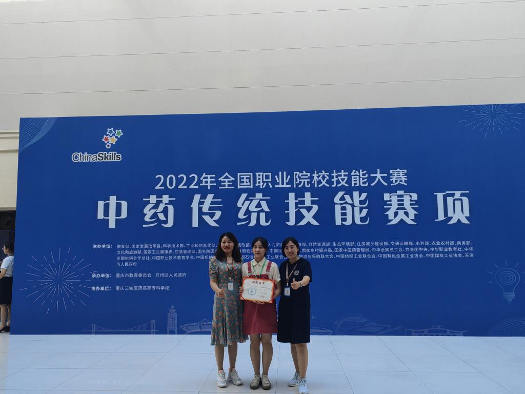 大赛点亮人生,技能改变命运。7月30日,2022年全国职业院校技能大赛中药传统技能赛项在重庆三峡医药高等专科学校圆满落下帷幕,我校中药学院参赛选手汪嘉丽同学凭借扎实的专业技能和过硬的心理素质,经过三天鏖战,最终以全国排名第六的成绩荣获二等奖。