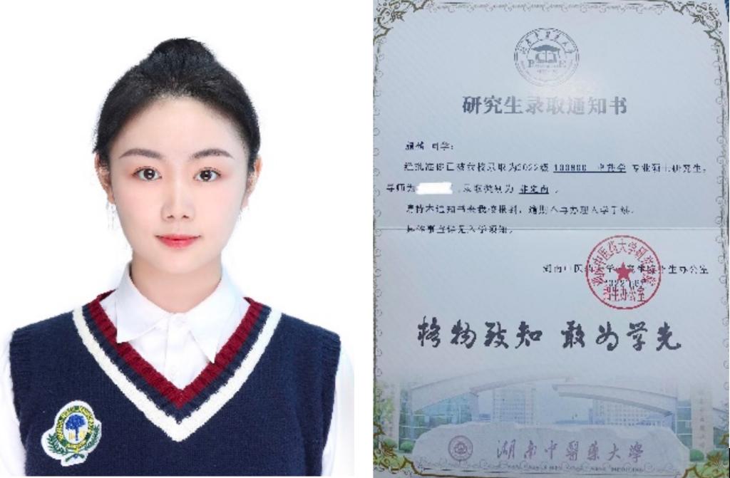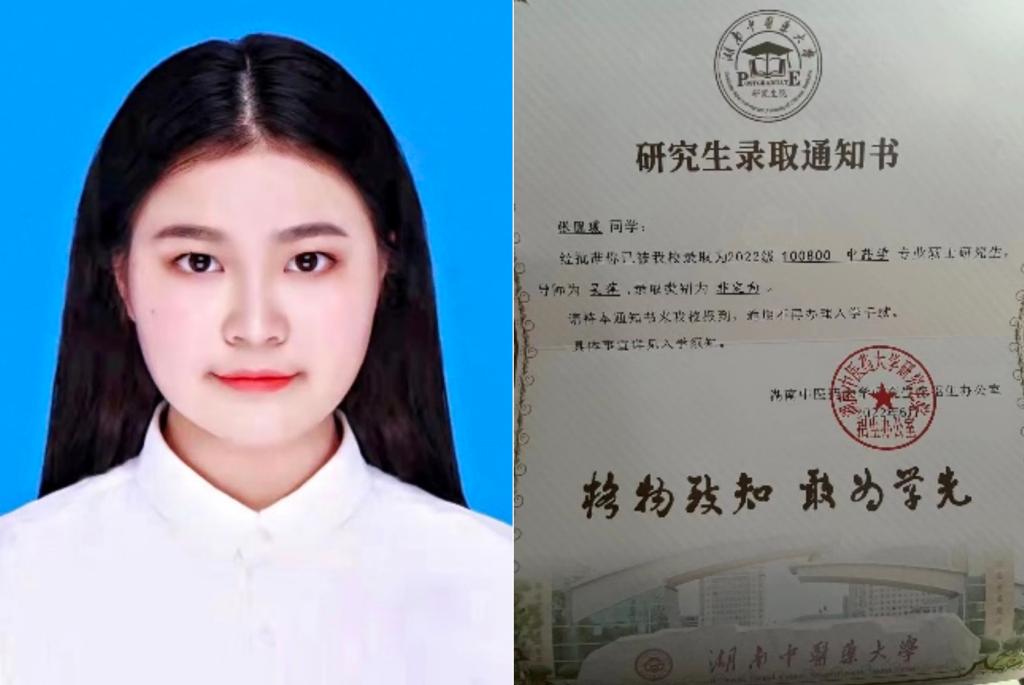 张圆瑗,湖南食品药品职业学院中药学院2015级中药15503班学生,2020年通过专升本考试进入湖南中医药大学,2022年通过研究生考试以第14名的好成绩进入湖南中医药大学。