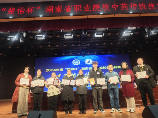 在12月10日结束的2024年度“楚怡杯”湖南省职业院校技能竞赛中药传统技能赛项中,中药学院院代表队表现出色,5名参赛学生均获奖,其中梁程杰荣获一等奖,高蕊荣获二等奖,张露露、杜洋、万璧茜荣获三等奖。这是我院在该项赛事中的一次重要突破,充分展示了我院在中药传统技能方面的教学实力和学生的专业素养。