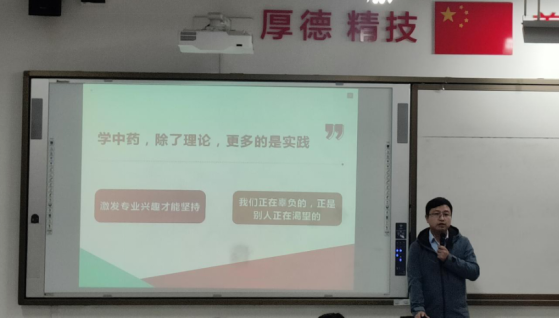 12月20日下午18:30,新林制药生产总监候令鹏来校为中药学院“2022-新汇班”进行一场关于中药生产加工的专题讲座。此次讲座旨在帮助同学们更好地了解中药生产加工的流程和技术,为他们了解岗位工作打下一定的基础。