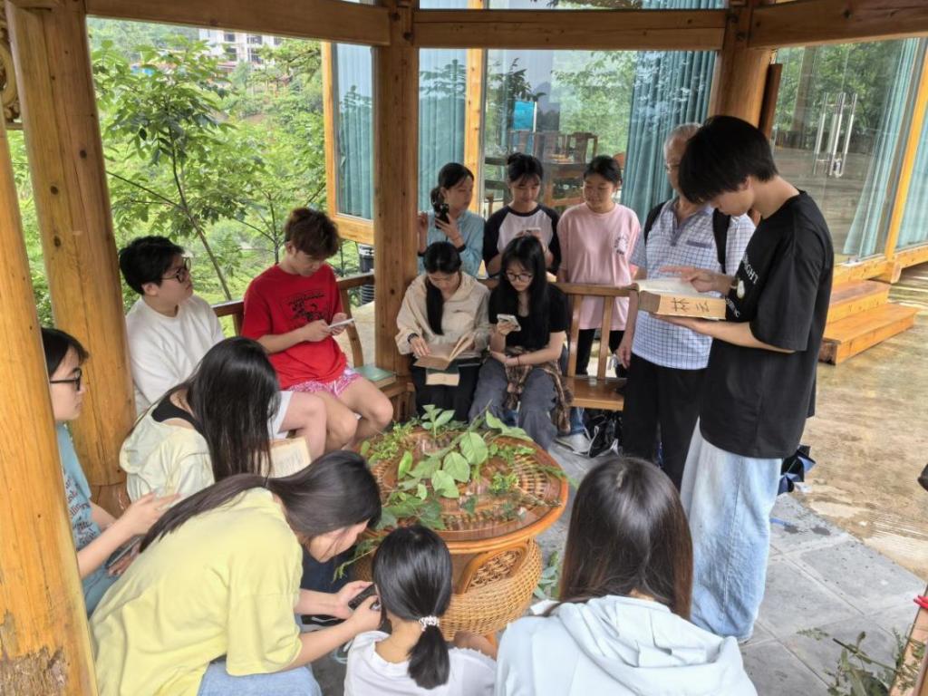 实训现场,林云、陈玉秀等专业教师将课堂延伸至自然生态中:室内授课环节,专家系统讲解、梳理了植物分类学知识,重点讲解了桑科、豆科、菊科等30余个重点药用科属的形态特征与鉴别要点。野外实践中,学生以小组为单位,运用线路调查法、样方法等技术,通过“眼看、手摸、鼻闻、口尝”辨识植物形态,亲手触摸、辨识、记录了近200种药用植物。夜间研讨会上,师生围坐梳理当日收获,将理论知识与实物观察深度融合。