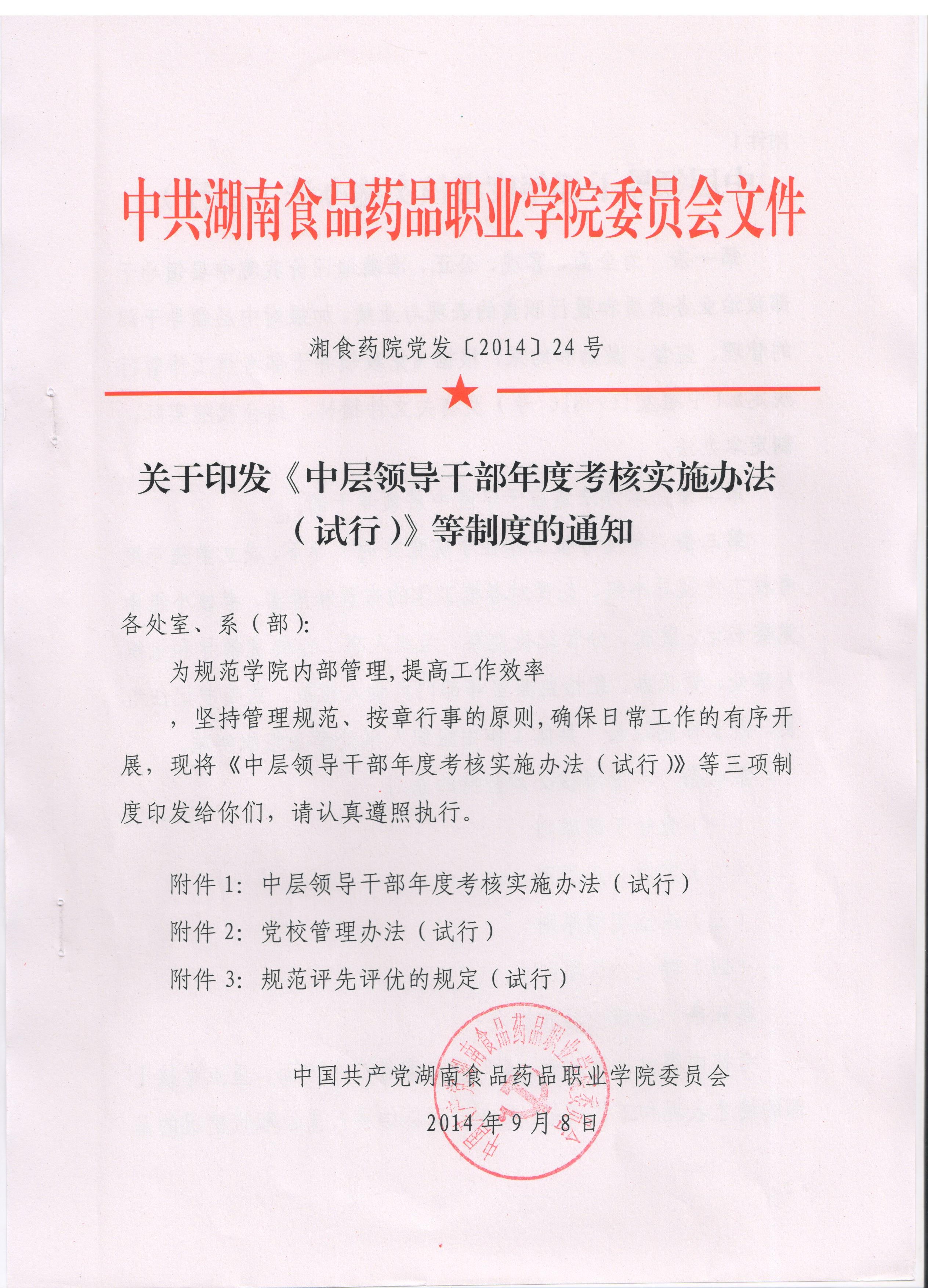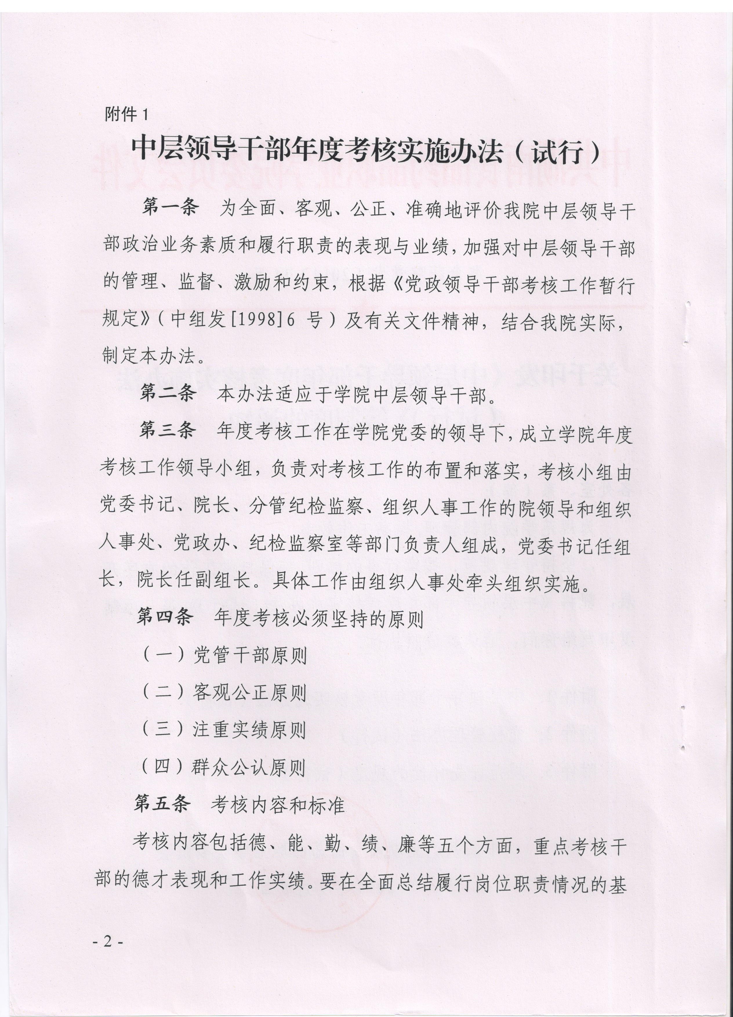 关于印发《中层领导干部年度考核实施办法(试行)》等制度的通知